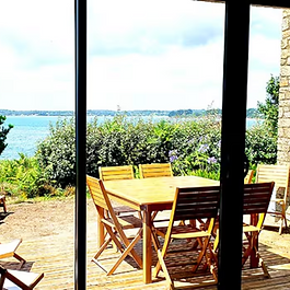 Ti Ar Mor... Emplacement unique sur l'île, vue à couper le souffle ! Située sur un vaste terrain, vous serez surpris par l'atmosphère unique de ce lieu. Face à la mer, au plus près de la nature grâce à son terrain sauvage, savourez du regard une multitude de végétation tout en contemplant le passage des bateaux sur le Golfe.